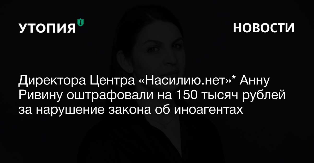 1 июня Перовский районный суд Москвы оштрафовал директора Центра «Насилию.нет»* Анну Ривину на 150 тысяч рублей за нарушение закона об иностранных агентах, сообщил «Утопии» Кирилл Коротеев, юрист правозащитной группы «Агора».