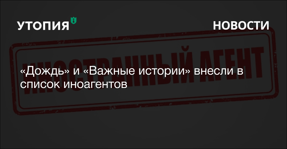 Телеканал «Дождь» и издание «Важные истории» внесли в реестр СМИ — иностранных агентов. Об этом сообщается на сайте Минюста. В список также внесли главного редактора «Важных историй» Романа Анина, корреспондентов издания Ирину Долинину, Алесю Мароховскую и Дмитрия Великовского, редактора Романа Шлейнова, а также журналистку-расследовательницу Олесю Шмагун.«Что касается самого списка иноагентов, то в нем уже столько приличных людей и изданий, что не находиться в нем просто неприлично», – ответила редакция «Важных историй» на действия Минюста.Ранее «Утопия» писала, что Минюст предложил изменить порядок отчетности НКО, внесенных в список иностранных агентов. Соответствующий документ вынесен на общественное обсуждение, которое продлится до первого сентября.
