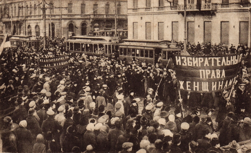 20 марта 1917 года «Лига равноправия женщин» организовала в Петербурге 40-тысячную женскую демонстрацию разных слоев, которая дошла до здания Думы с лозунгами «Место женщины в учредительном собрании», «Равное представительство без женщины — не равное», «Если женщина раба, не будет и свободы». Тогда на встречу им вышел председатель Временного комитета Государственной Думы Михаил Родзянко и пообещал включить женщин в состав избирателей. Россия была первой крупной европейской страной, в которой женщины получили избирательные права.