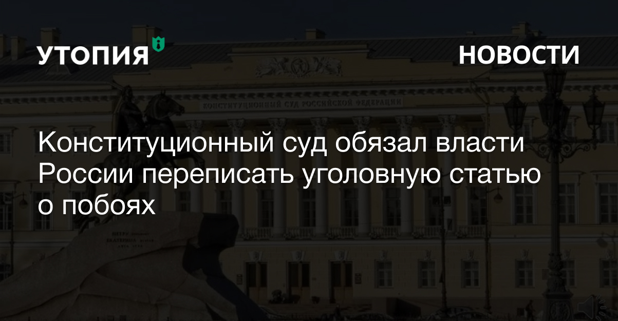 Конституционный Суд России 9 апреля признал часть уголовной статьи о побоях (116.1 УК) противоречащей Конституции. Из-за неточности в законодательстве агрессоры за третье избиение получали более мягкое наказание, чем за второе.