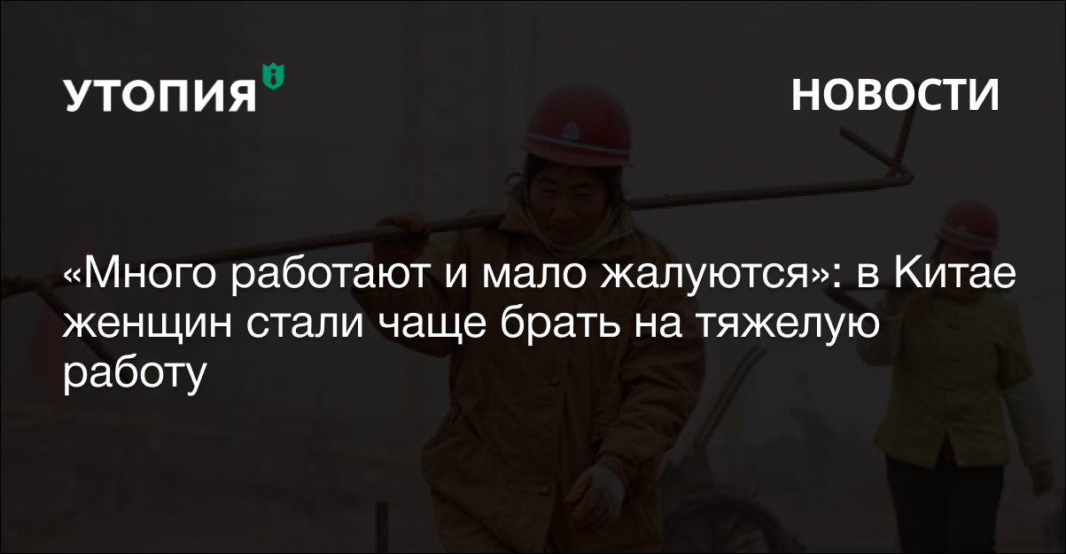 В Китае женщин стали чаще привлекать к работе, которая связана с тяжелым физическим трудом. Востребованности женщин способствует не только нехватка работников-мужчин, но и политика государства по развитию сельскохозяйственных районов.