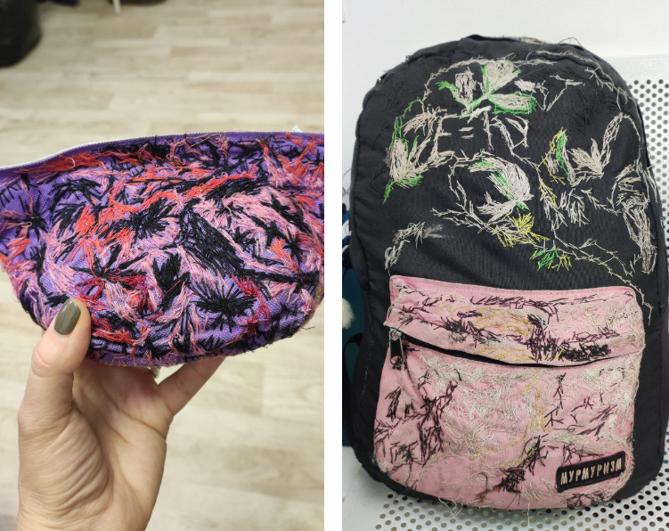На рюкзаке я вышила формулу света: постоянная планка на частоту электромагнитных колебаний. Свет — это ведь жизнь. Рюкзак прослужил мне два года, но истерся, и я его выбросила. На улице все пачкается и быстро приходит в негодность. Еще юбку вышивала, хотела ее украсить: она уже вся просвечивала, с каждой стиркой лен становился все тоньше. Три года я ее носила, сейчас тоже выбросила.