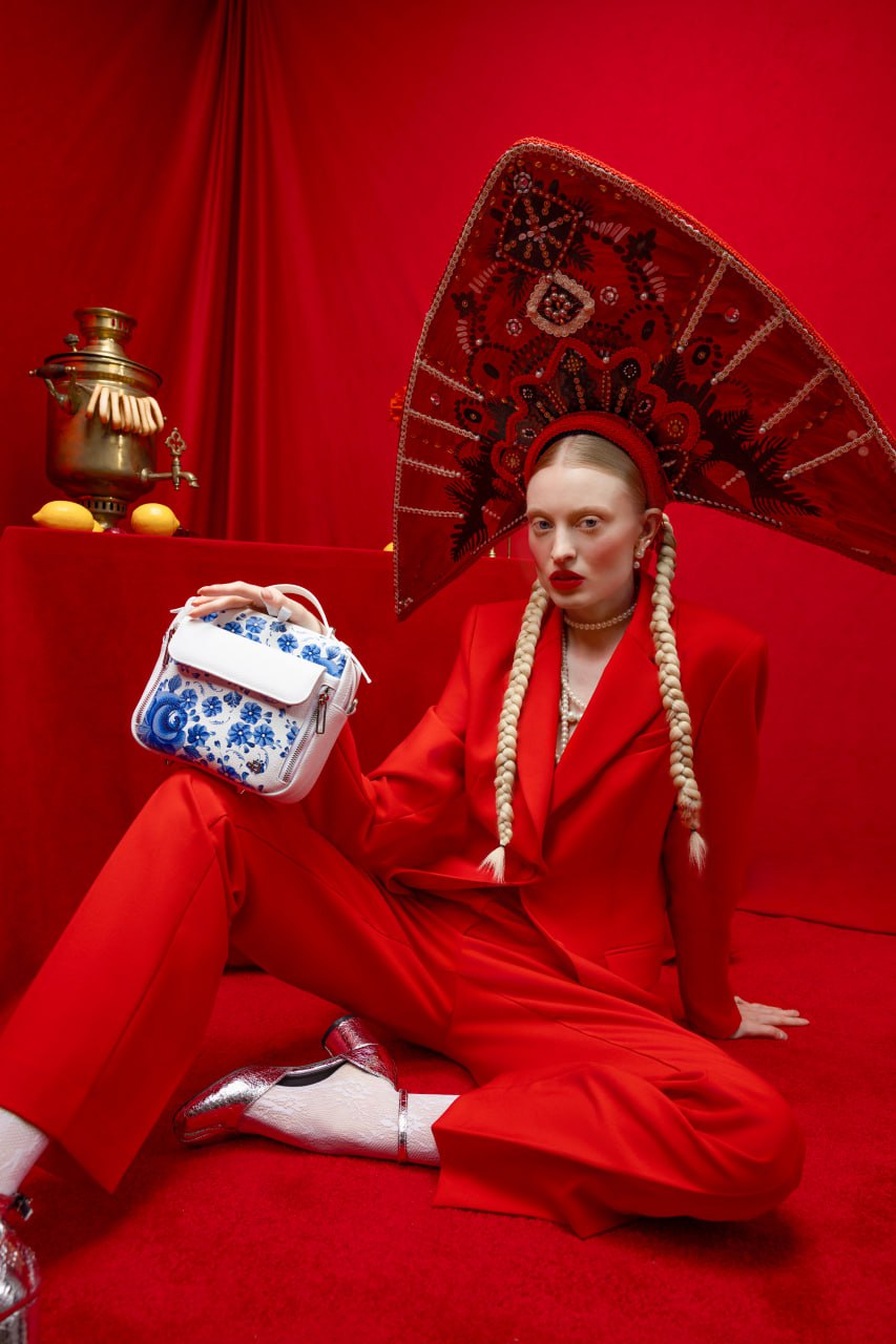 С xейтом за «неправильное» отношение к традиционной культуре столкнулся и петербургский бренд кожаных аксессуаров «Верфь». Весной 2024 года они выпустили коллекцию сумок в коллаборации с «Гжельским фарфоровым заводом». Мастера гжели расписали сумки фирменными узорами. Изделия отсняли на девушке в гипертрофированно-большом кокошнике и глянцевом кожаном сарафане.