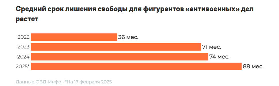 Большинство людей преследовали по первой части статьи, которая предполагает, что человек должен иметь минимум два решения суда по административным делам о дискредитации в течение одного календарного года. Это объясняет, почему пик применения этой статьи пришелся на 2023 год: за это время с начала вторжения у большинства политических преследуемых как раз появились вторые решения суда.