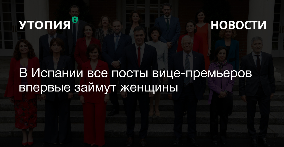 В Испании все четыре поста заместителей председателя правительства впервые займут женщины, заявил во вторник глава кабинета министров Педро Санчес. Об этом пишет ТАСС.